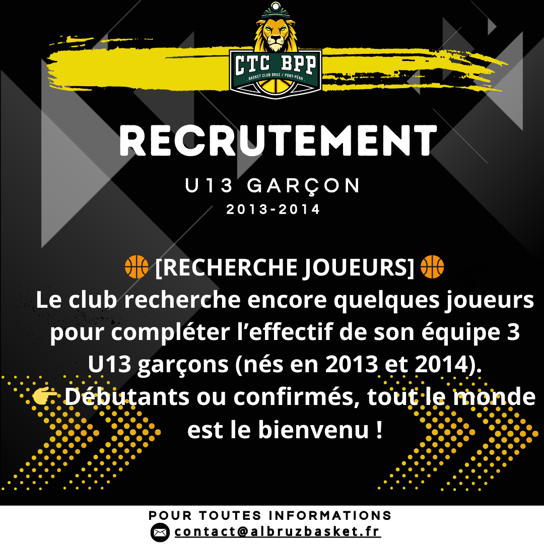 Recherche u13 Garçon pour compléter l’effectif de l’équipe 3